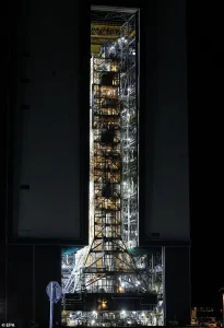 Pictured: Early in the morning on Saturday, January 17, NASA begins to move the Artemis II rocket out of the Vehicle Assembly Building at NASA’s Kennedy Space Center. Next month, it will be used for the first manned-mission to the moon since 1972