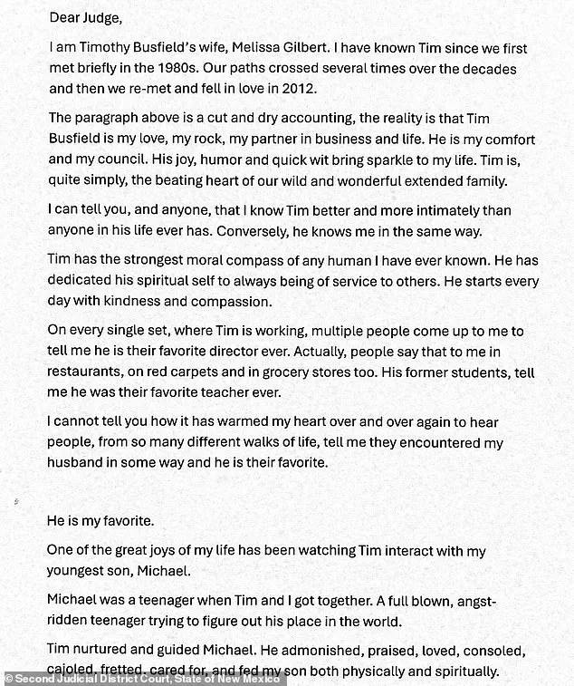 In a heartfelt letter addressed to the judge, Gilbert painted a vivid portrait of her husband, Busfield, as a man of unwavering integrity and devotion.