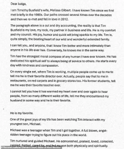 The letter, which was submitted as part of a court filing, sought to sway the judge’s decision on Busfield’s release on bond, with Gilbert imploring the court to ‘protect’ her husband.
