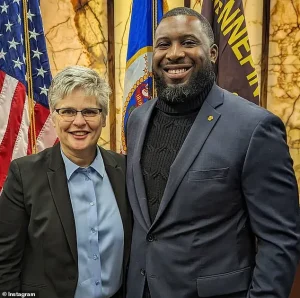 Lundy’s presence at the demonstration has drawn particular attention due to his professional ties to Moriarty, a figure often dubbed ‘America’s wokest prosecutor’ for her progressive policies and affiliations with organizations linked to billionaire George Soros.