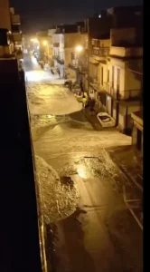 Dramatic footage shared on social media captured the chaos of Tuesday night as powerful Storm Harry battered the Mediterranean, unleashing waves that transformed urban streets into churning rivers.