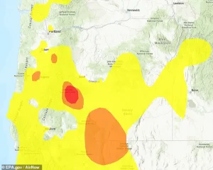 The EPA reported on Wednesday that portions of California and Oregon, including the densely populated city of Los Angeles, have experienced air quality levels classified as ‘unhealthy’ for all residents.