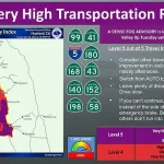 The NWS has issued a ‘very high transportation risk’ for drivers in this region, with visibility restricted to less than 200 feet in some areas.