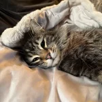 Nora, an outdoor cat, had not been seen since the previous day, prompting the family to check their doorbell camera out of curiosity.