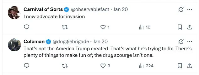 While some Americans have embraced the clip as a form of dark humor, others have condemned it as a cruel and reductive portrayal of a nation grappling with one of its most severe public health crises. ‘Wild how President Orange is right there but they choose to troll addicts that are suffering,’ one X user lamented, highlighting the dissonance between Trump’s rhetoric and the reality of the epidemic.