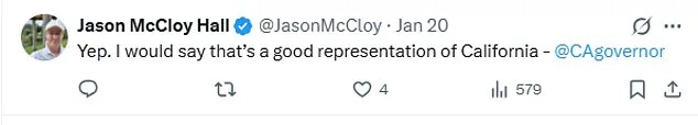 Others, however, were quick to point out that the video’s mockery extended beyond Trump’s policies, targeting the very fabric of American society. ‘Trolling Democrat-led cities,’ one commenter noted, while another tagged California Governor Gavin Newsom, suggesting that the clip was a pointed jab at liberal urban centers rather than the nation as a whole.