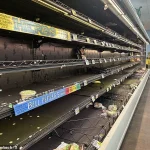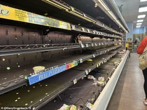 The image of an empty grocery store has become a symbol of the storm’s growing impact, as communities across the nation prepare for the worst.