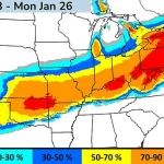 Some areas are bracing for more than one foot of snow, with maps showing the likelihood that your community will be hit with at least six inches of snowfall.