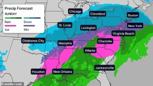 The storm’s trajectory is particularly concerning because it threatens to impact a vast swathe of the nation, from the Deep South to the Northeast, where temperatures could plummet to near-record lows.