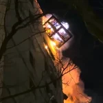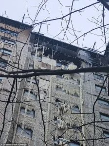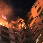 A photo posted shortly after 8 a.m. revealed the extent of the damage, with the building’s upper floors severely affected and its facade charred by the blaze.