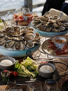Guests reportedly dined on oysters, prosciutto, and jamón, sipping premium alcohol as the cost of a single dinner soared to 1 million rubles (£9,700).