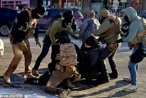 Video from the scene shows him being pushed to the ground and surrounded by agents before being disarmed.