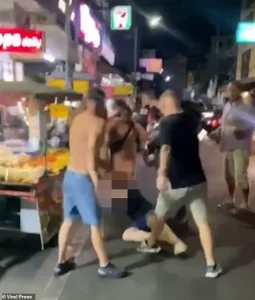 The situation took a further turn when the pair turned their aggression toward an Australian tourist, prompting a group of onlookers—primarily women—to shout at them to cease their actions.