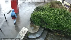 A new CCTV image of Alexander Key at 3.25pm on Saturday, walking past the Wellington Pub on Old Road in Boscastle, in the direction of Boscastle Harbour towards the River Valency