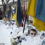 In Kyiv, a woman visited the snow-covered memorial for the fallen Ukrainian and foreign fighters on Independence Square, a poignant reminder of the sacrifices made.