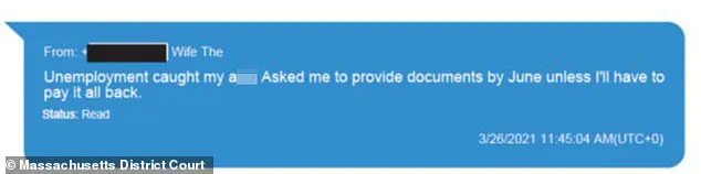 When confronted by the Department of Unemployment Assistance, she reportedly sent a text to her late husband that read: ‘Unemployment caught my a**!’—a phrase that prosecutors argued reflected a callous disregard for the system she exploited.