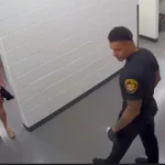 Newly released video captures the first moments of Michael McKee, 39, as he is processed into Franklin County Corrections Center following accusations of murdering his ex-wife and her husband. The footage, obtained by Fox News, shows McKee, a former surgeon, walking through the booking process with a calm demeanor, his hands casually in his pockets as he is dressed in a blue t-shirt and red shorts. Officers pat him down, and he cooperates by placing his hands on the counter and opening his mouth, gesturing to his glasses before being issued jail-issued tan sliders. His composed expression and willingness to engage with officers contrast sharply with the gravity of the charges against him.