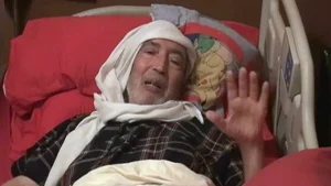 Convicted Lockerbie bomber Abdel Basset al-Megrahi at his home in Tripoli after his release