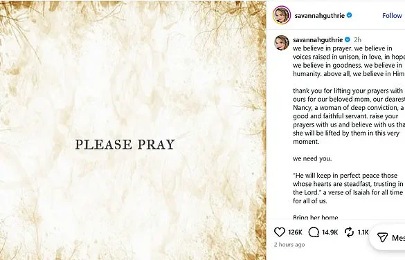Savannah Guthrie, host of the Today Show, unleashed a raw and desperate appeal for help as her mother, Nancy Guthrie,...