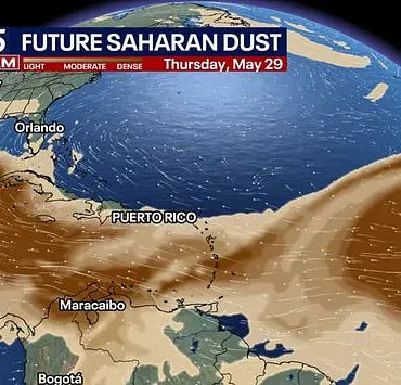 A massive cloud of Saharan dust, originating from the vast and arid expanse of the Sahara Desert, is currently traversing...