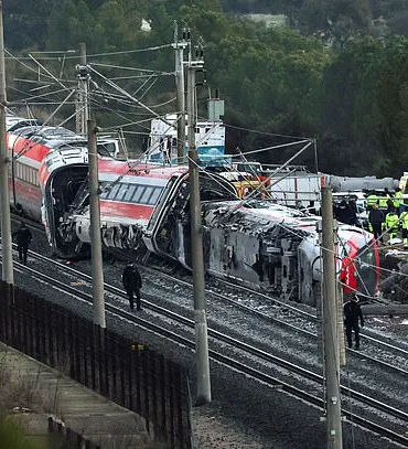 Passengers on board two high-speed trains, which derailed in Spain last night, were catapulted through windows, with their bodies found...