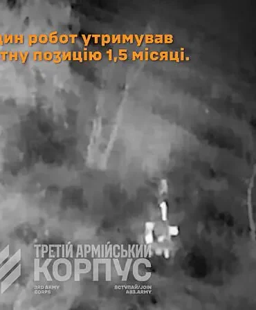 A Ukrainian robot armed with a heavy machine gun held off repeated Russian attacks on the eastern front for 45...